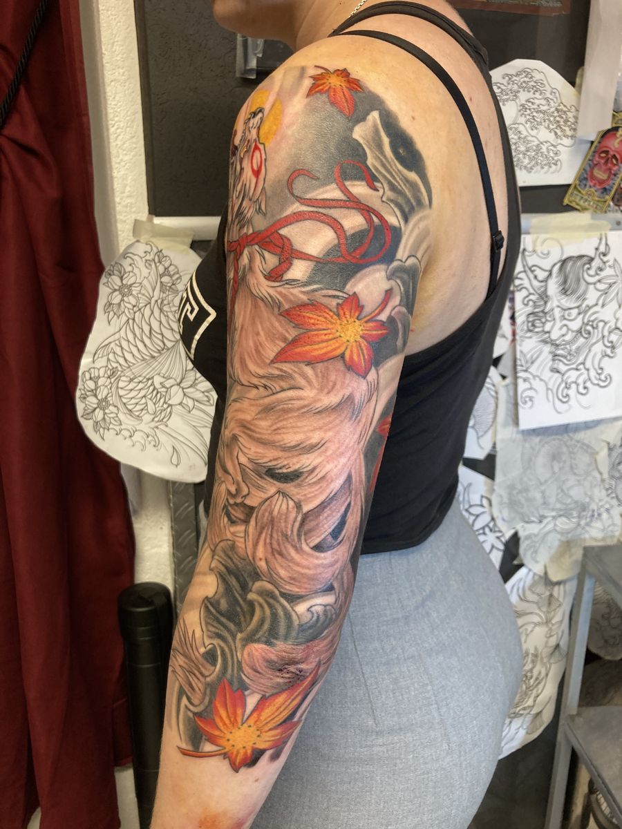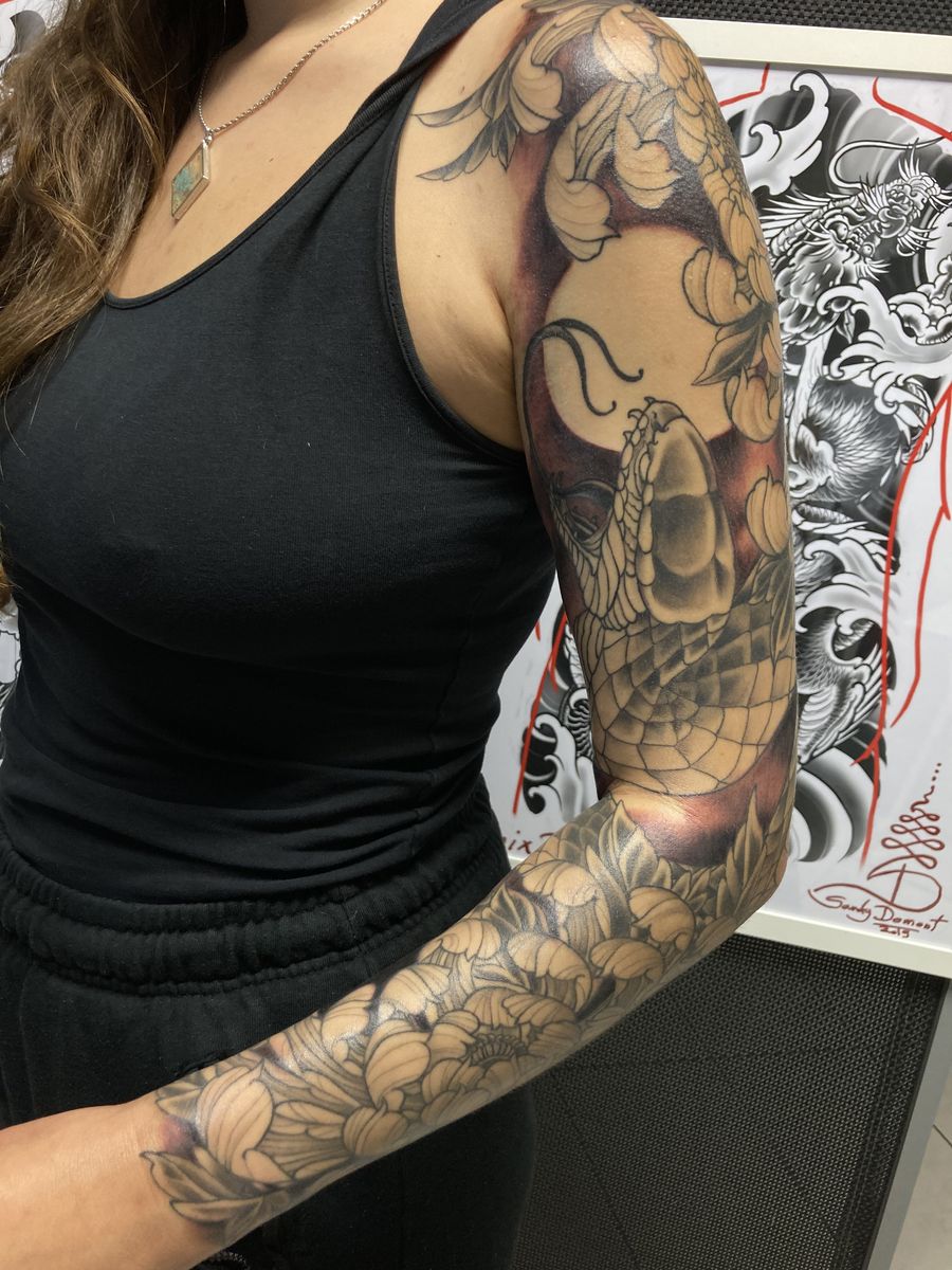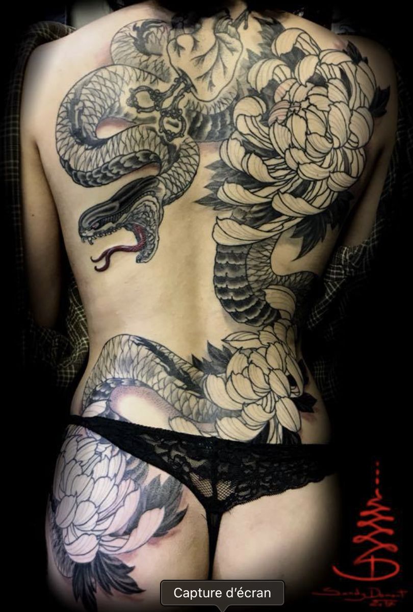 Amoureuse du style asiatique, Sandy vous propose d'adapter votre projet sur mesure en respectant les courbes de votre anatomie et en adaptant le sujet de manière àce que le tattoo passe au mieux les années